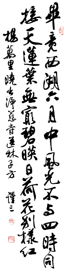 在王老书房墙上,挂着一幅已故我的老师汪深先生自作诗楷书条幅“愈老愈轻礼往来,交如淡水亦知哀。不擅拜人福自少,惯迟作谢债高堆。称心岁月荒唐过,醉意诗文落寞陪。白日黄鸡情自好,任随流水东西回。甲申春正记怀”读诗赏字叫人心痛,汪老师正值中年,书艺日臻妙境,却身染重疾,而索字者又唯恐不及……王老谈及他与汪老师的两次交往,一次是汪老师拿着此幅自作诗楷书条幅来看望他,聊起自己身体不好,艺债难还的苦闷。之后,王老又亲自去汪老师家看望。辛巳清明祭扫归来后,王老再赏原作,心有感触,便在原作空白处原韵奉和“挚友至交常往来,高谈阔论岂知哀。谦恭忍让灾祸少,行善积德福自堆。似锦岁月莫闲过,春风桃李醉意陪。夕阳灿灿晚晴好,幸逢盛世又轮回。汪深老师赠诗书大作,余辛巳清明祭扫归来,重览遗作,书原和旧作遥祭。谨三”。