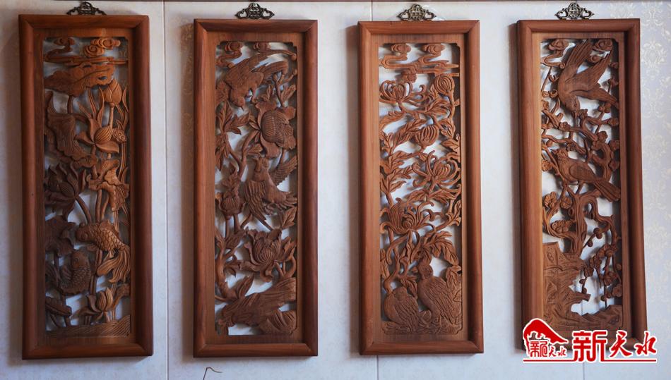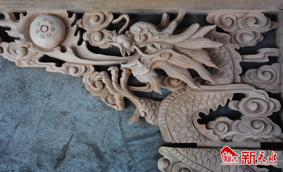 指着眼前尚未雕刻完成的屏风,宋伟强告诉记者:“你看,这就是二龙戏珠,属于透雕。甘谷木雕分圆雕、浮雕、透雕三种。圆雕又称立雕,可四面观赏;浮雕是把物象组成在较薄的体积上,只能从一面欣赏;而透雕则可从正反两面欣赏,既有圆雕的特点,又有浮雕的风格。”