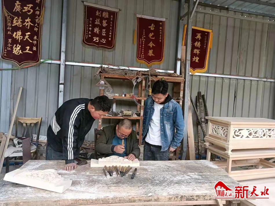 当然,宋伟强的这份匠心也被慕名而来的徒弟继承下来。2021年,神艺木雕厂被甘谷县确定为磐安镇四十铺农厂村就业帮扶车间,车间内现有来自周边乡村的二十多名技艺熟练的员工。在这里,宋伟强收徒授艺10余载,将当年师傅传承给他的技艺,手把手教授给自己的徒弟。