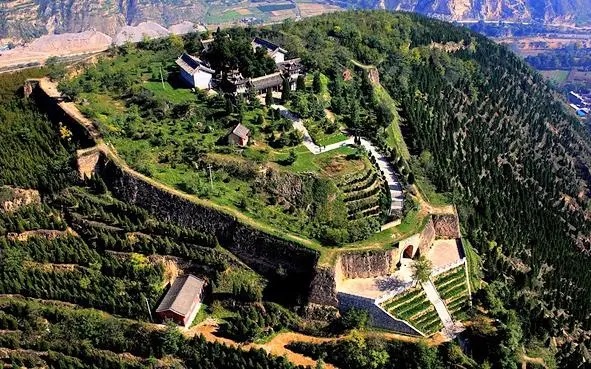 土夯的城墙,矗立在峰顶。黄土一层层垒起,沿着山峰的形状形成环形的城堡。这种堡子,在陇东南地区非常常见,在古代,人们为了躲避战乱,抵御土匪流寇,必须采取防御措施,陡峭的孤峰上土夯的堡子,是最佳选择。