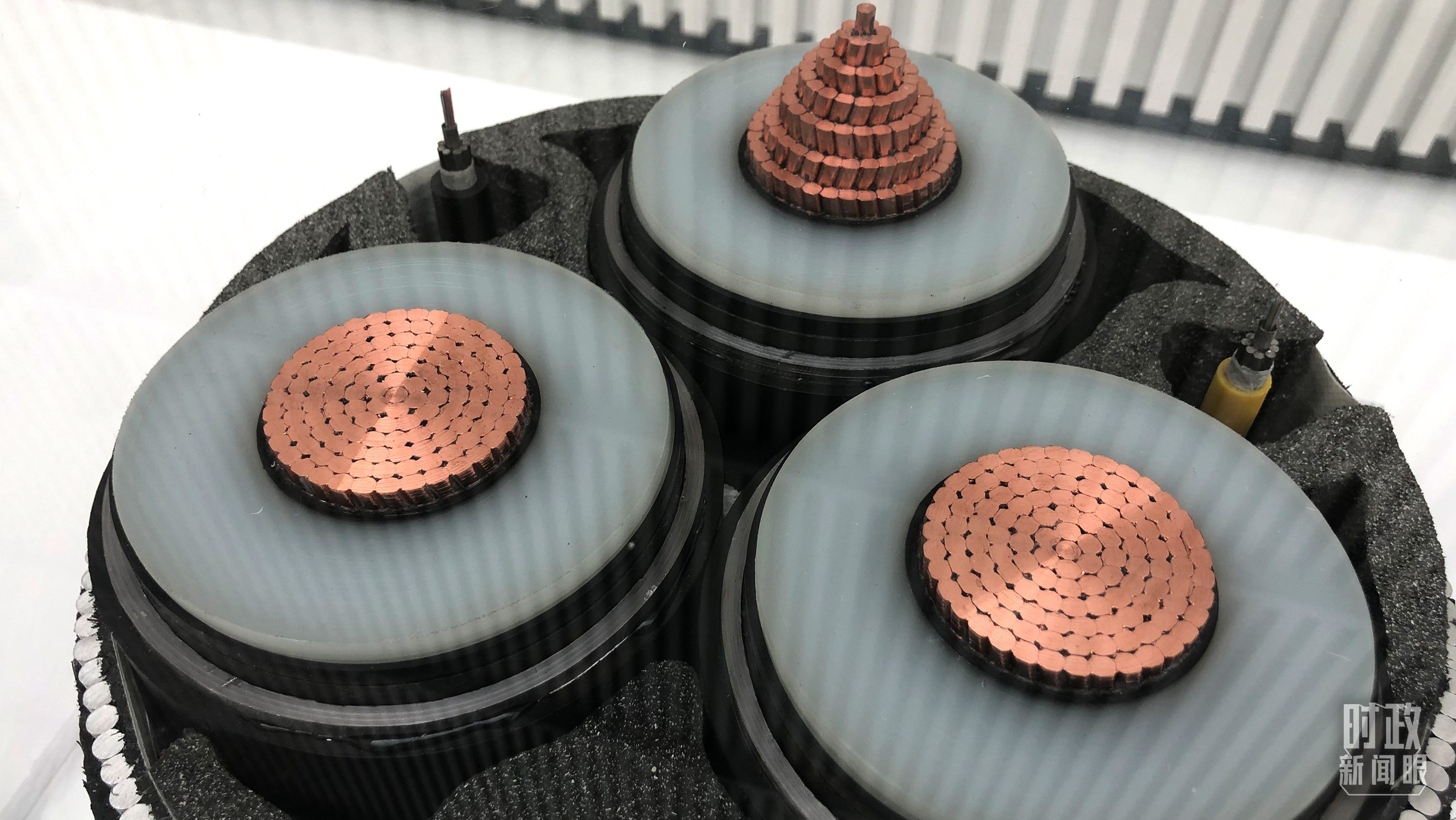 △展示馆内展出的“海底光电复合缆”,用于海洋能源互联,比如海上风电集电及输出。(总台央视记者许永松拍摄)