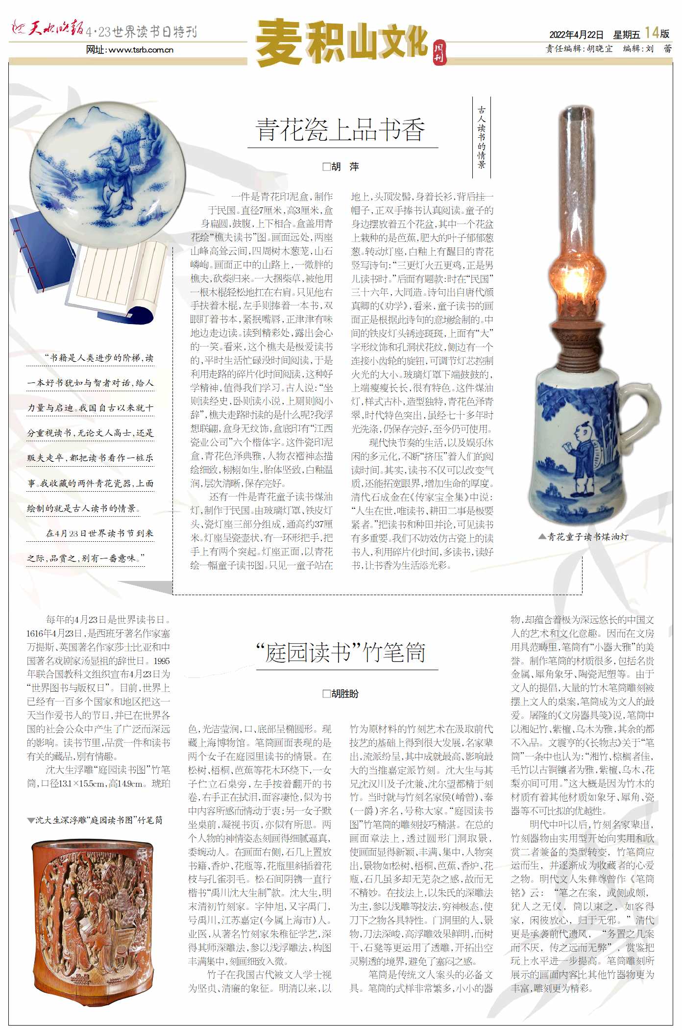 书籍是人类进步的阶梯,读一本好书犹如与智者对话,给人力量与启迪。我国自古以来就十分重视读书,无论文人高士,还是贩夫走卒,都把读书看作一桩乐事。我收藏的两件青花瓷器,上面绘制的就是古人读书的情景。在4月23日世界读书节到来之际,品赏之,别有一番意味。