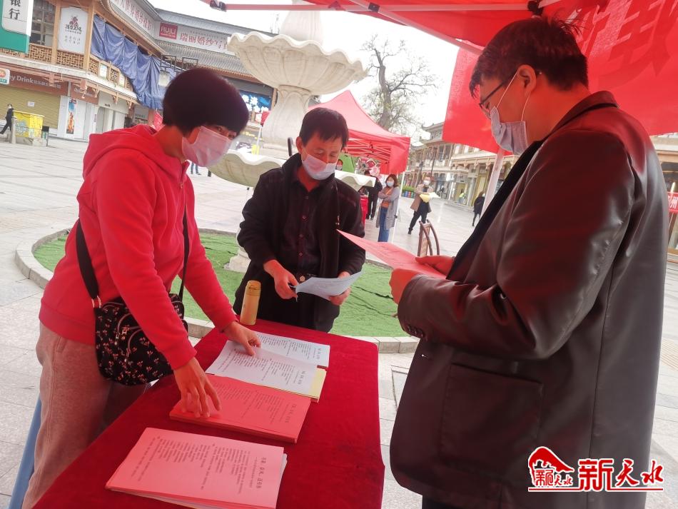 新天水讯【记者刘蕾】4月22日,为进一步提升公众的知识产权保护意识,激发广大市民“爱读书·爱阅读”的情怀,在第22个世界知识产权日和第27个世界读书日来临之际,秦州文旅局开展了“打击盗版维权”知识产权宣传暨“奋进新时代·阅读再出发”读书宣传系列活动。