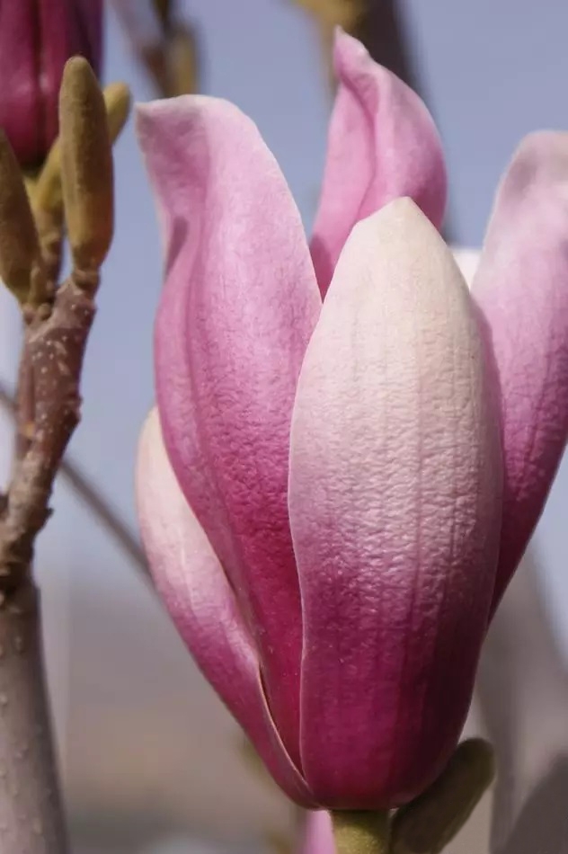 当地村民不称玉兰,而叫木莲。其实一也。玉兰是木兰的一种,民间把这类花泛称为木兰花、木莲花、木笔花、望春花,或称辛夷、厚朴。细分起来,辛夷则是可以入药的木兰花蕾,厚朴是木兰属植物的树皮或根皮。我认为,华阳玉兰正是李时珍所谓的“紫苞红焰”玉兰。《本草衍义》谓“辛夷花未开时,苞上有毛,尖长如笔,有桃红、紫色两种。”我曾考证过,《诗经·静女》中的“彤管”应当是红色的笔管花无疑,笔管花即木笔花民间的又一种称呼。