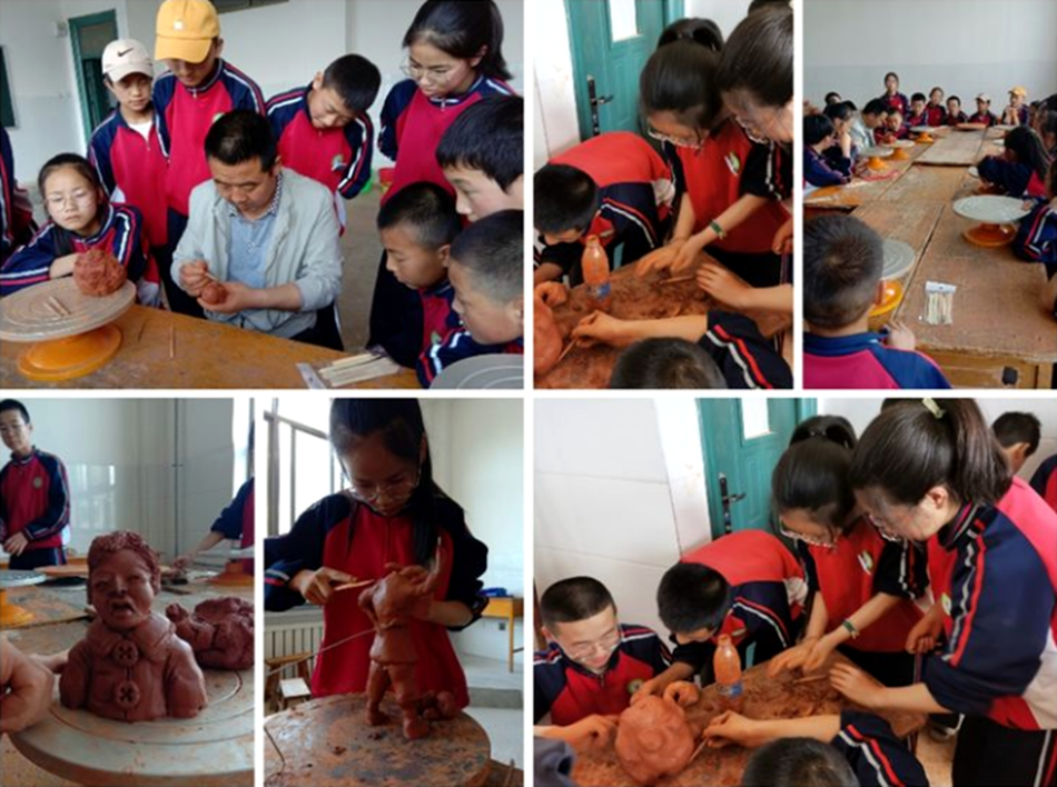 于是,关学田走进家乡的校园,他被滩歌初级中学聘为“陶艺社团”辅导员。作为校外辅导员,他与学生一道挽起袖子,捏起泥巴,共同度过一段欢乐时光。泥塑进课堂,极大地激发了学生的学习兴趣。