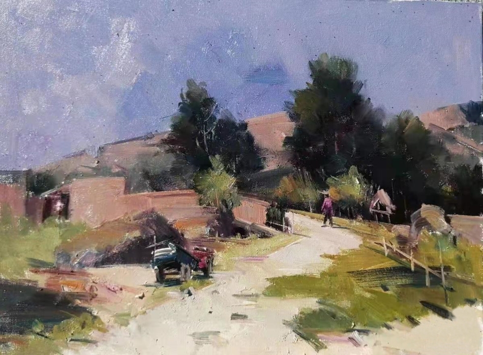 胡少东的作品,正是以他深爱的这片土地为素材,这里的沙漠、草原、骏马、牛羊、帐篷、瓦房都成为其画作的艺术素材,他是用现代的油画艺术书写着民族风情的故事。少东的画,不是表现草原的壮美就是大山的雄浑,不是草原儿女的健美就是西部农家女孩的质朴。草原的帐篷有时在他画里是主景,西部风情的炊烟是他画里的乡愁。小河的溪水是岁月的长歌,西部天空的深蓝和浓云是他画里民族风情故事的见证。看少东的画,一股民族风情的劲风迎面扑来,一部西部乡土风情的画卷跃然纸上。