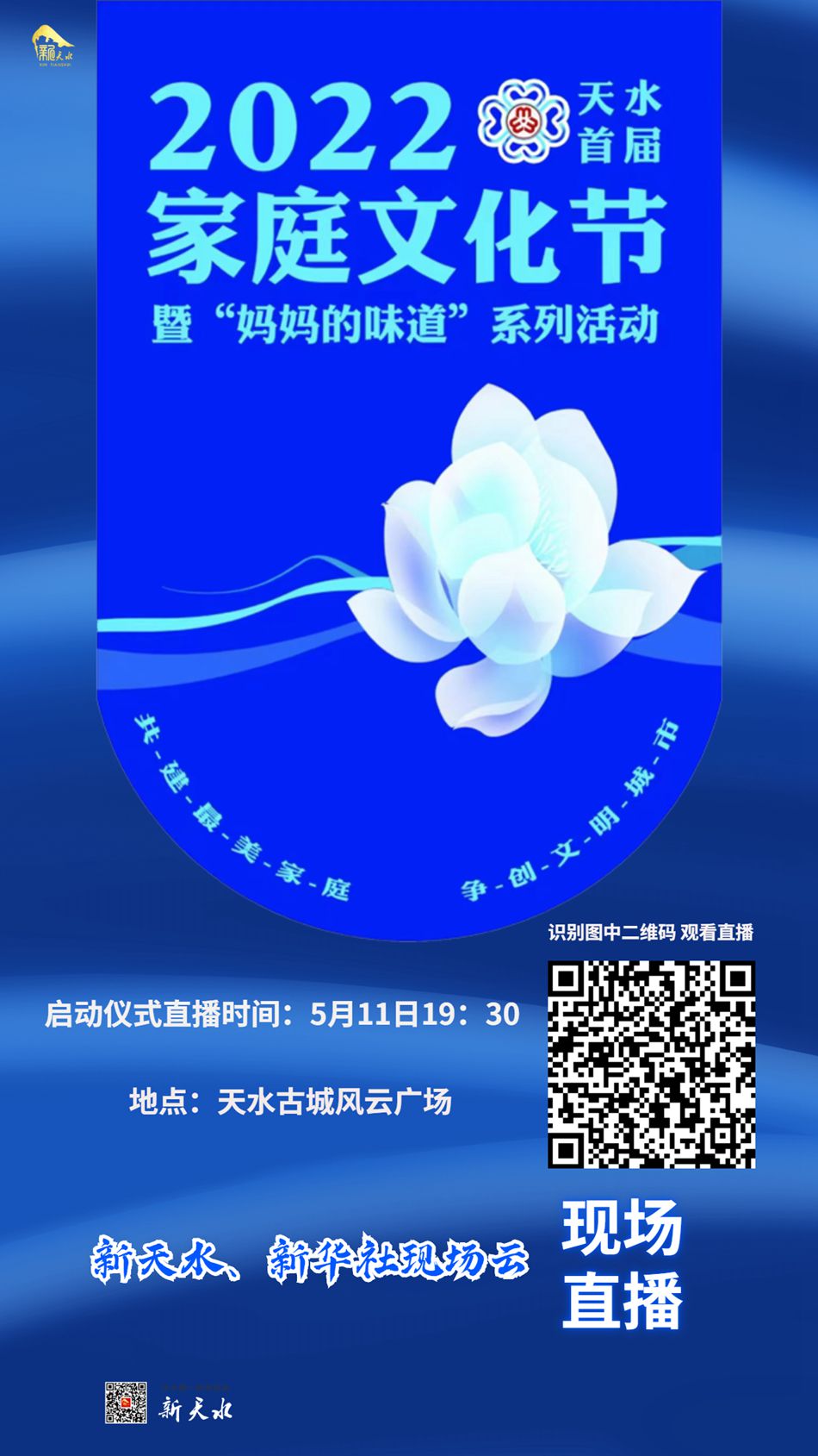 在第29个国际家庭日来临之际,由天水市妇联、天水日报社、秦州区委区政府等主办的“共建最美家庭 争创文明城市”2022年天水首届家庭文化节暨“妈妈的味道”系列活动将在天水古城开展,其中,启动仪式将于5月11日19:30在天水古城风云广场举办。届时,新天水客户端、天水日报微信公众号、新华社现场云全程现场直播,敬请关注!