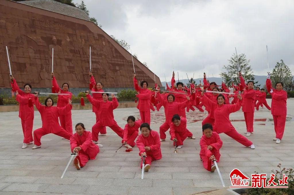 新天水讯【记者刘蕾】天光云影徘徊共武,丹霞奇峰相得益彰。5月14日,武山县文化馆组织巾帼武术队走进国家3A级景区鲁班山举行武术展演活动。展演现场,拳、刀、剑、棍等传统武术轮番上映,拳法行云流水,棍术、剑法精进有力,在鲁班山丹霞奇峰神姿仙态的映衬下,动静结合间,更显武术之精髓,文化之根脉。