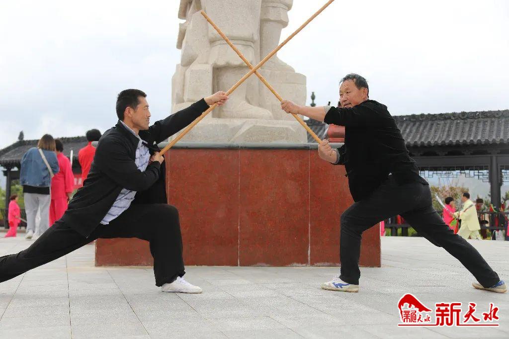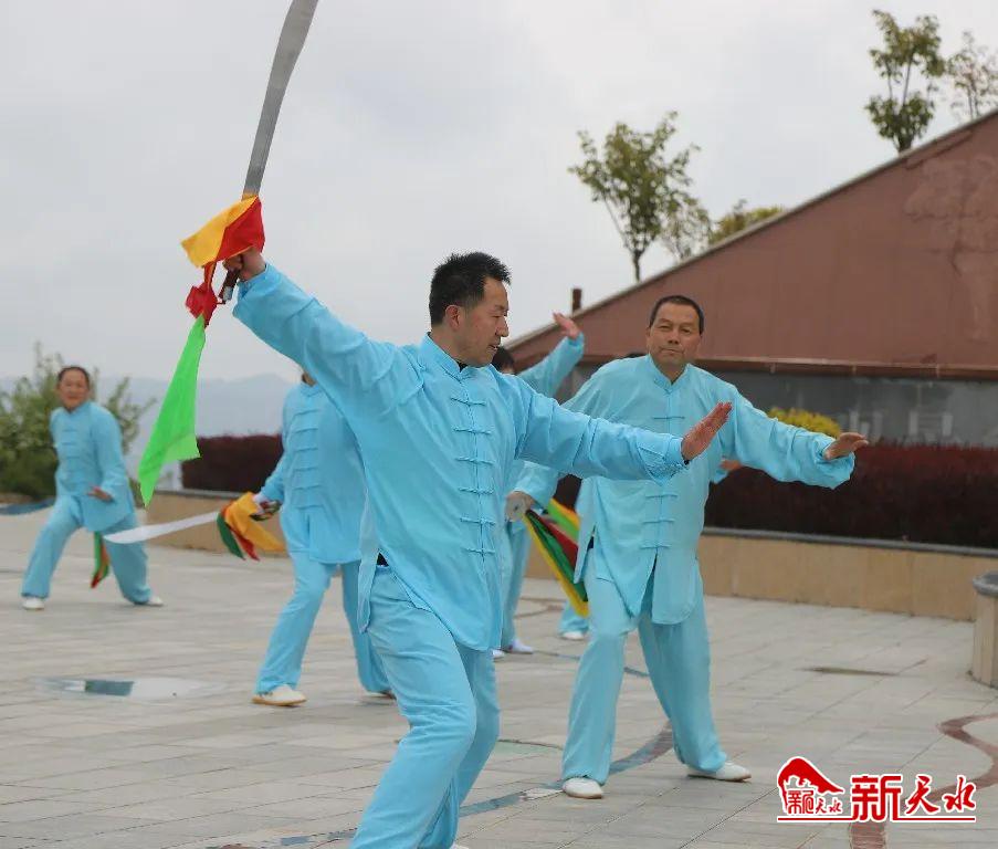 文艺小分队在鲁班山观景平台先后表演了市级非遗保护项目长穗提花剑,二十四式太极伞、三十二式花样太极剑、四十式太极拳、太极十三刀、棍术及融民间杂技与中华武术为一体的风火流星等节目。内容丰富,形式多样,刚柔兼济,充分彰显出武山深厚的武术文化底蕴。