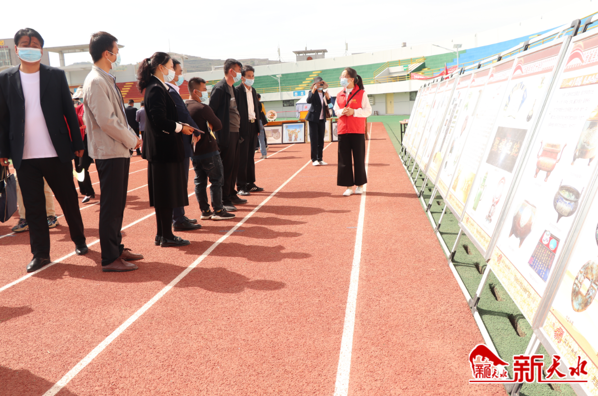 新天水讯 5月19日是第12个“中国旅游日”,今年的主题为“感悟中华文化 享受美好旅程”。旅游日当天,张家川县博物馆开展馆藏精品文物图片流动展览活动在县体育中心拉开帷幕,为“中国旅游日”助力。