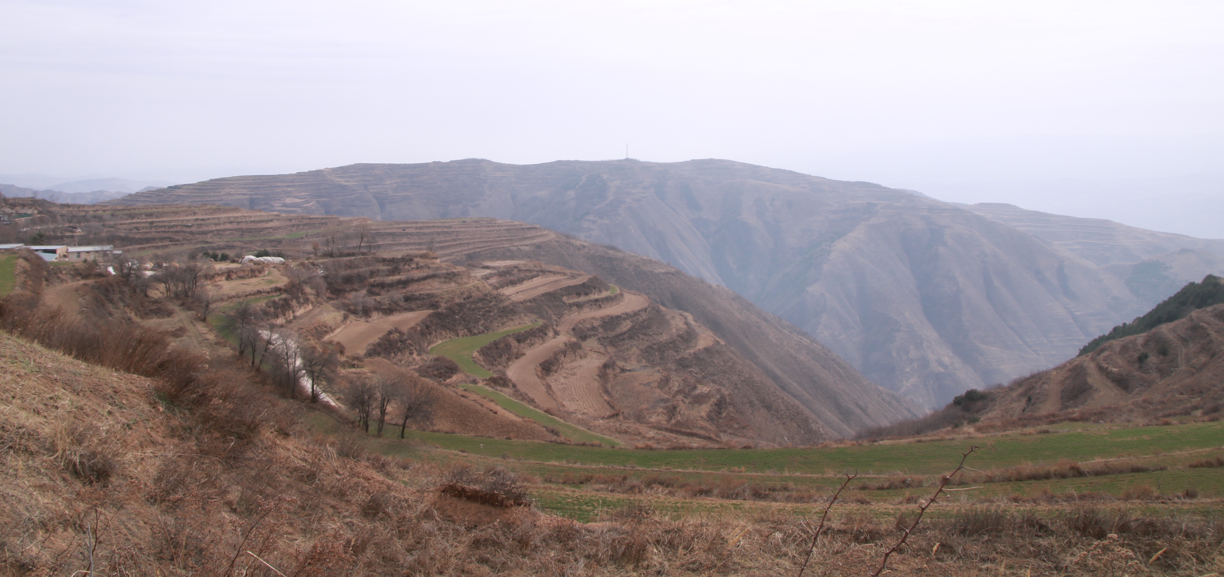 这道山脉没有高峻峭拔的地方,应该就是典型的西北黄土高原地形。而恰恰就是这样敦厚质朴的样貌,让一条龙孕育着浑厚之外的本色之美,粗拙而不丑陋,窈窕而不妖娆。那些层层梯田,在远观者的眼里,就是一片一片的龙鳞,在岁月的抚摸之下,带着温厚的人性之光。我想着,那些梯田就是在一片片的龙鳞之上摇曳出粮食的丰裕,以此告慰生活在此的一代代的人们。他们是有福的。他们祖祖辈辈将自己的生命轨迹深深刻进一条龙的肌肤,同时,又刻进自己的骨头里,最后,又刻进延续不断的文化命运里。这是一条带着集体记忆的巨大财富,有人性的人间之真,又有龙性的超凡之圣,而养活性命和精神的五谷杂粮就在这二者的大交融里散发出让大地震颤的浓浓香味。