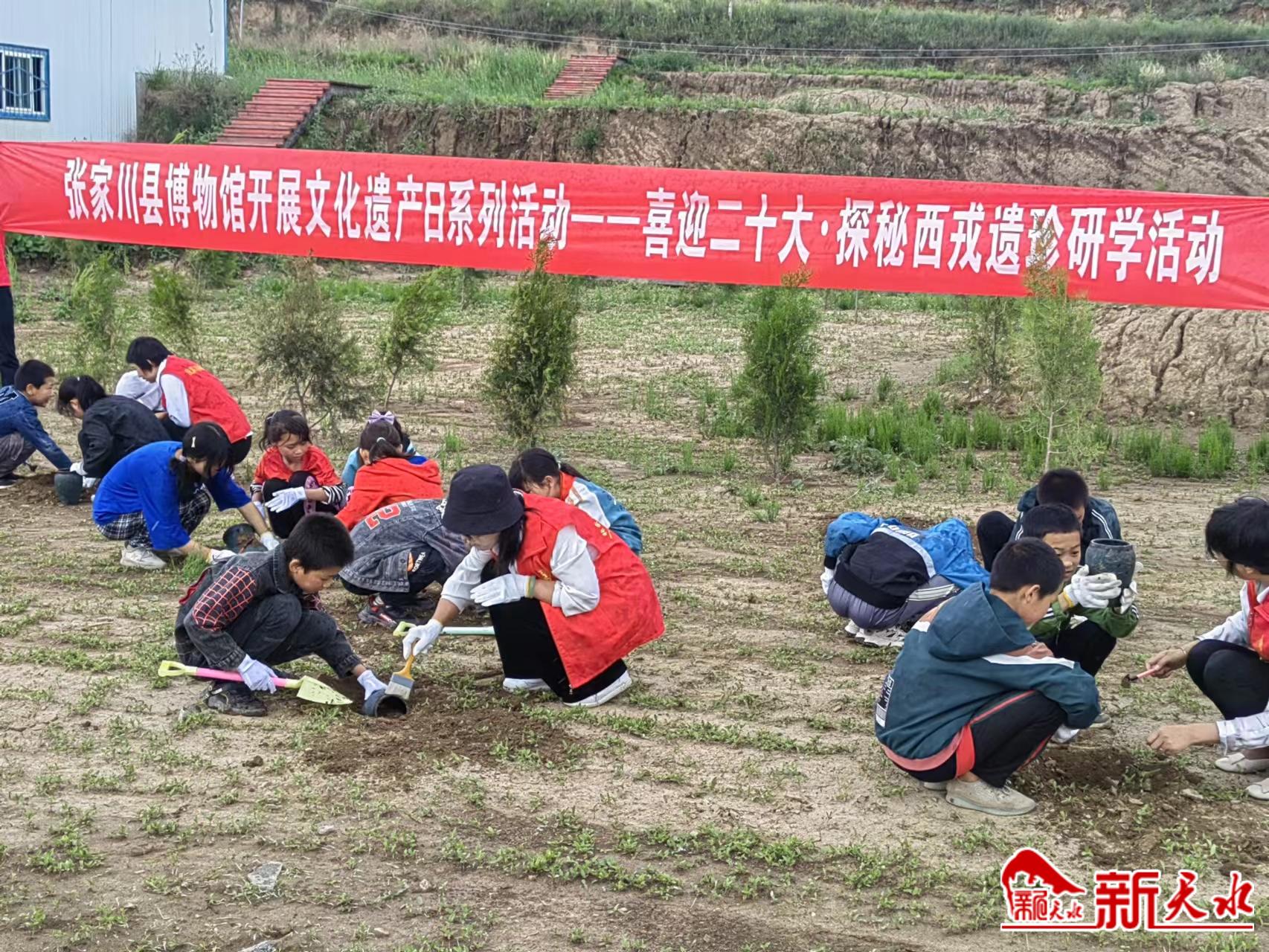 新天水讯 为了积极响应落实教育部、国家文物局《关于利用博物馆资源开展中小学教育教学的意见》,在第17个“文化和自然遗产日”来临之际,近日,张家川县博物馆充分利用文物资源——马家塬遗址及墓葬,在墓葬回填区域举办了以“喜迎二十大•探秘西戎遗珍”为主题的模拟考古研学活动,吸引桃园小学20余名学生参加。