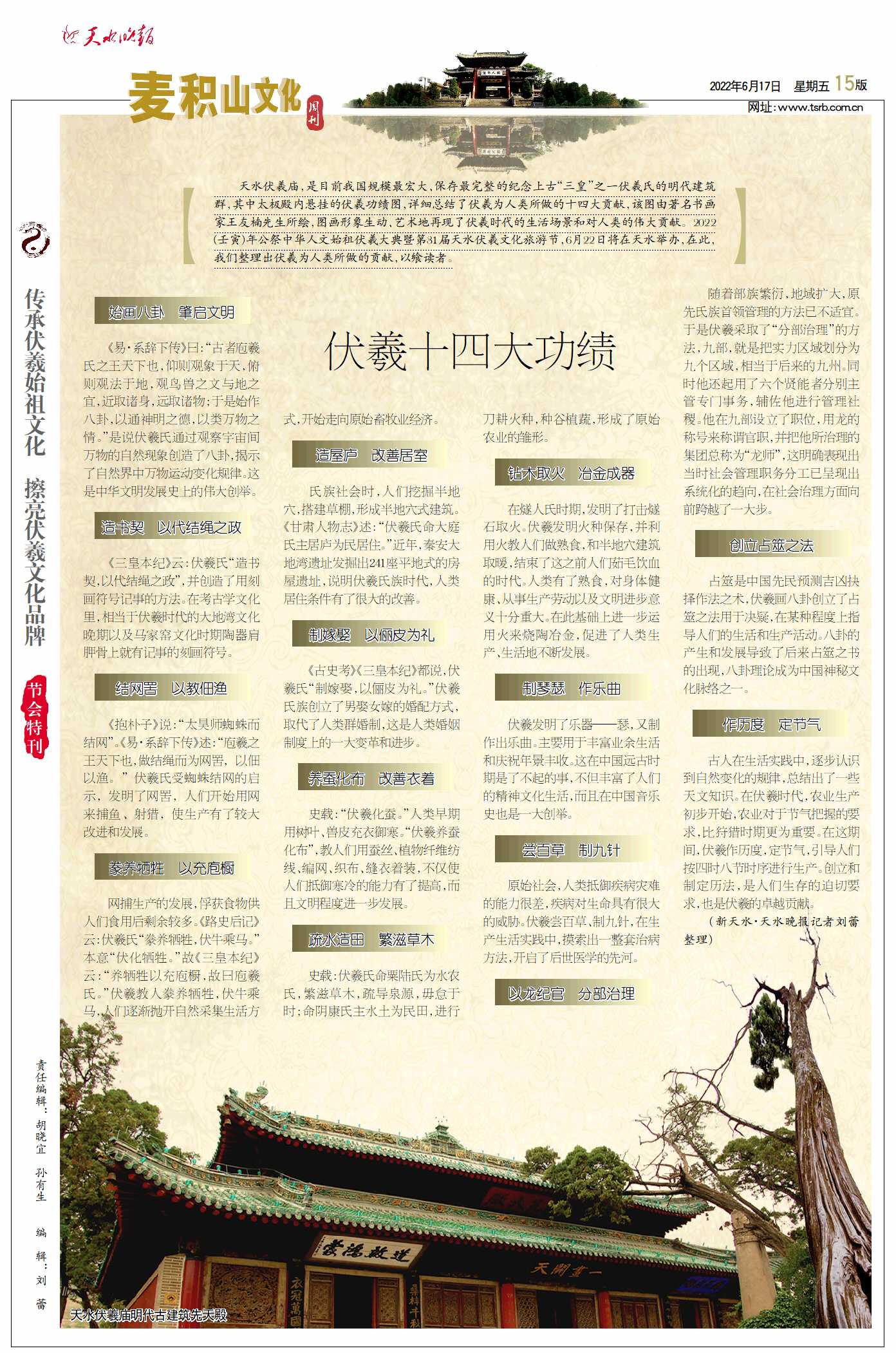 【2022 · 伏羲文化旅游节】伏羲十四大功绩