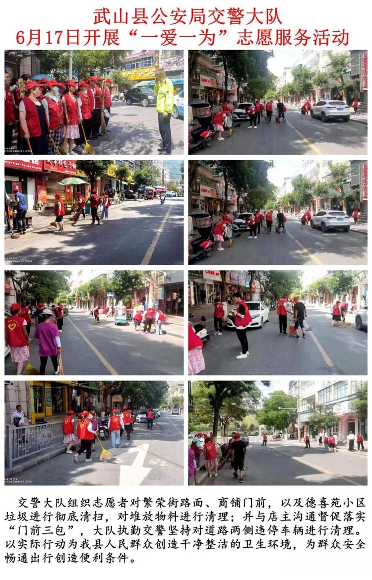 新天水讯 据武山县融媒体中心消息(记者 彭雪)6月17日,武山县各单位组织志愿者开展“一爱一为”环境秩序集中整治志愿服务活动。
