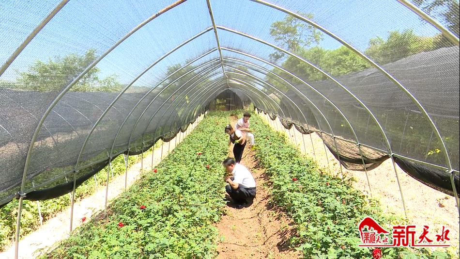 仲夏时节,秦岭镇董集寨村群山苍郁叠翠,山坳上几座大棚掩映在绿林中,这是董集寨村今年新建成的月季花卉育苗基地。大棚内,管理人员正在对花卉进行拔草、浇水等管养工作。