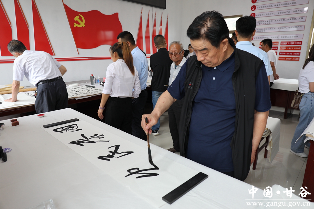 新天水讯 据甘谷县融媒体中心消息 为庆祝中国共产党成立101周年,不断丰富群众文化生活和改善人居环境,展现新中国成立以来农村面貌发展的历史巨变及推动乡村振兴战略的实施,6月26日,甘谷县新兴镇雒家村党总支联合天水市秦州区环境卫生执法中队党支部、天水市天水湖景区管理处党支部在雒家村党群服务中心举办《喜迎二十大 奋进新征程》结对共建、助推乡村振兴和书画交流活动。