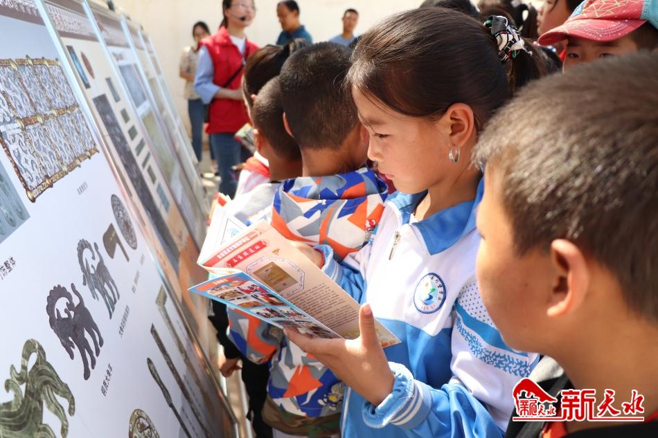 活动开始,博物馆讲解员组织全校师生参观了“流动博物馆”,加深偏远乡村师生对张家川历史文化的了解,接着开展“文博知识进课堂”,社教老师从马家塬遗址葬俗、墓葬形制、出土马车构架、戎人生活习俗以及生产生活方式入手,用通俗易懂的语言为师生讲解,让大家对马家塬独特的西戎文化有了较为系统的认识。
