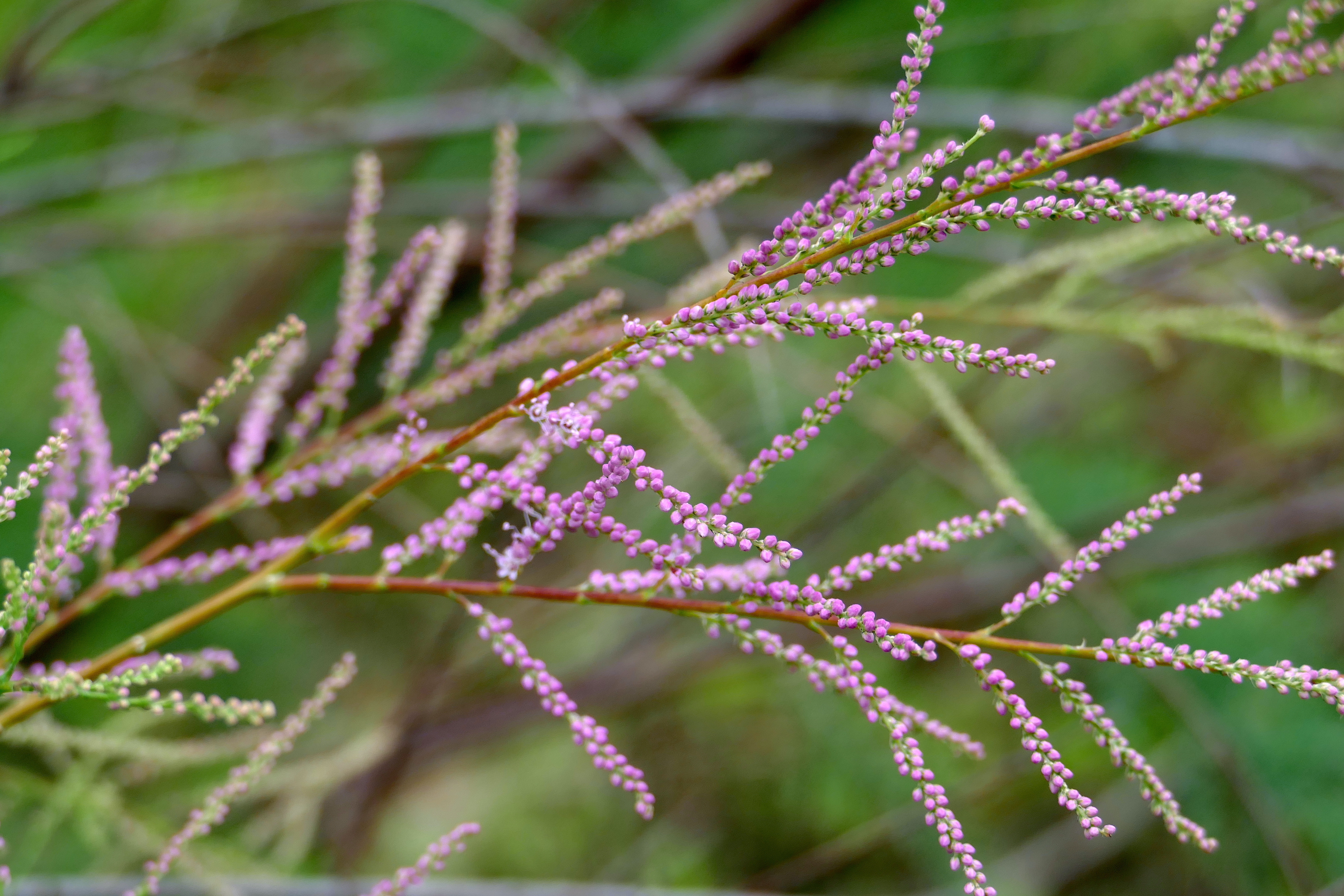 它孤独地站在那片废墟中,不修边幅,也许它就是太有个性,不愿意与其他野花野草同伴,别人茂盛的地方它不去,它偏偏挑没植物的地方待着,这就是它的倔强。它长得不高,估计在这每年台风都要肆虐几次的海岛上,它也真的高不到哪里去。它身体很柔软,尤其是它的枝条,难得的是,这个季节它开花了。柽柳的花非常小,集中生于枝条顶端,排列成圆锥状花序,花小而密,呈淡雅的粉红色。在微距里,才能认真看到它的模样,没想到,如此倔强的身子,开的花却那么的小清新。说真的,当你跟它待在一起,你一定会喜欢它,你看它柔柔弱枝,缕缕细丝,婀娜迷人,蓝而绿的叶子泛着狐媚的光泽,小而密,白或粉的花朵簇拥着开满枝头。