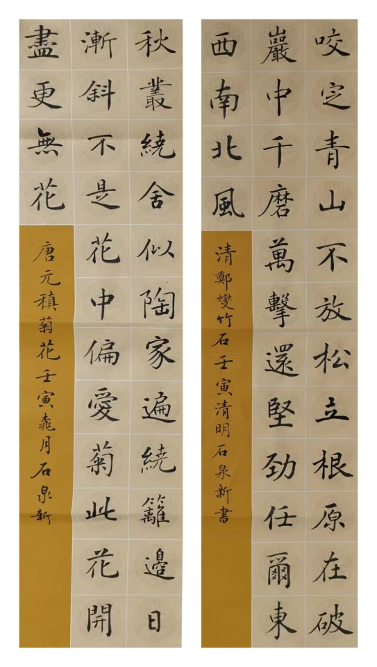 楷书不是规范字。楷书是书法艺术。它以文化为灵魂,以法度为宗旨,以优美为指归,以典范为境界。一幅好的楷书,不但让人赏心悦目,而且可以让人感受到善和美的光芒,所谓尽善尽美者矣。甘谷书家石泉新自幼爱好书法,经年习楷,临池不辍,楷法遒美,温润雅和,字势生动,宛若天然,如春水荡漾,如百草回芽,如远岫出云。观其书,慕其人,想见其风采。