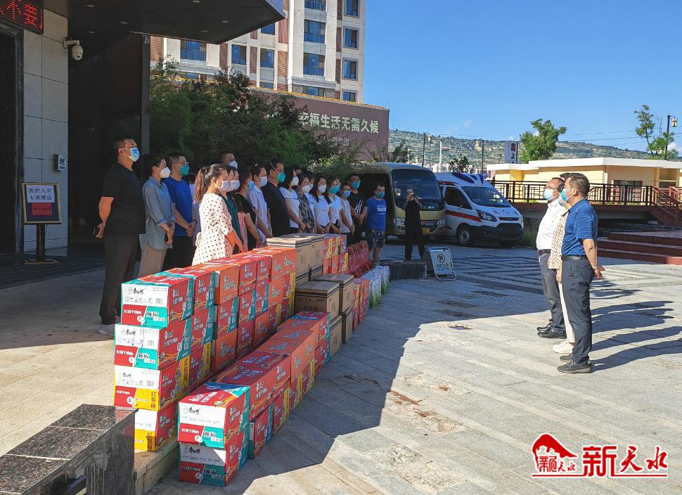 7月22日,由市卫健委牵头,市三院携手市中医医院慰问了市卫健系统派驻市五院医疗救治队队员,为他们送去了生活物资及中药预防方剂。