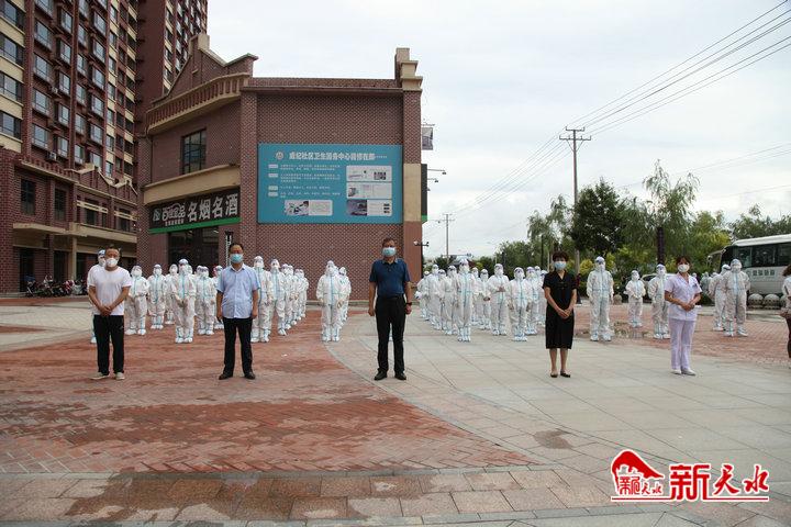 7月22日上午,市中西医结合医院(市二院)院长和麦积区社棠镇相关领导到秦都·褐石公馆广场看望慰问了即将奔赴一线执行核酸采样任务的医疗队员。