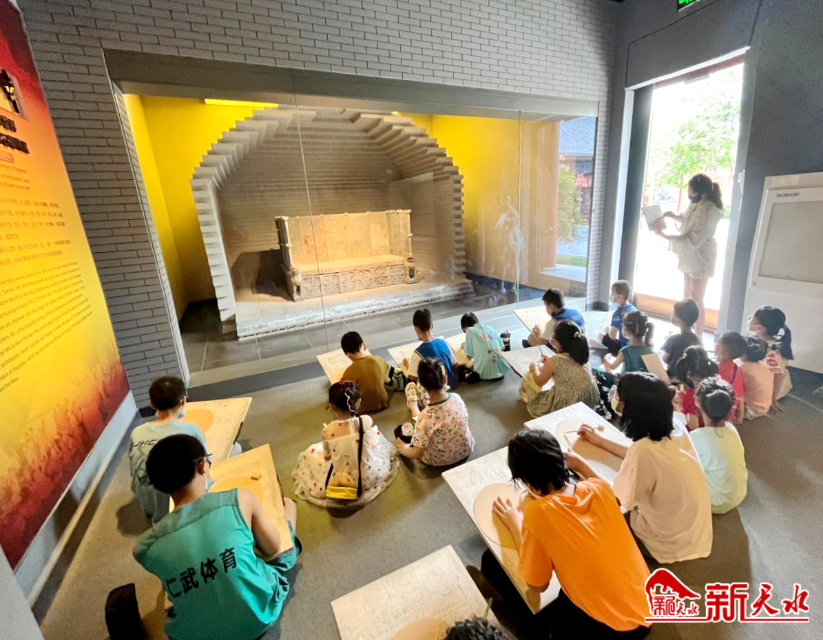 新天水讯【记者刘蕾】文物承载灿烂文明,传承优秀历史文化,维系民族精神,是弘扬中华优秀传统文化的珍贵财富。为丰富青少年暑期精神文化生活,以更好的精神面貌喜迎党的二十大,8月9日,天水市博物馆依托馆藏文物资源,开展暑期研学系列活动之“我与国宝面对面”,该活动以写实绘画的方式将文物与美术艺术融为一体,从美学的角度引导青少年了解天水市博物馆镇馆之宝——隋贴金彩绘围屏式石棺床发掘保护的四十年及其背后的历史文化内涵。