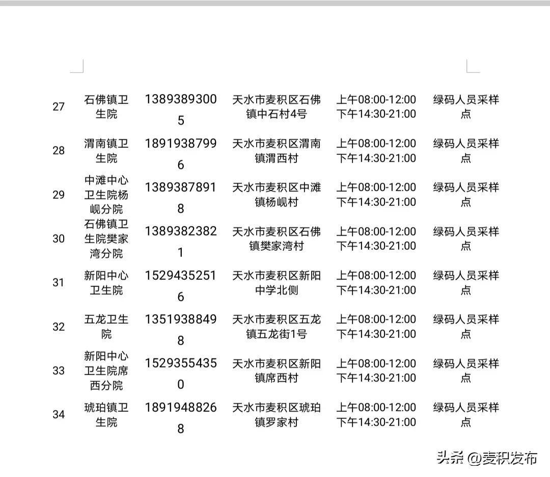 按照20分钟步行可达、排队时间不超过30分钟标准,构建“2030”核酸采样服务圈要求,我区在城区设置11个固定便民核酸采样点,在三阳医院和各镇卫生院(分院)分别设置1个固定便民采样点,为57类重点人群和需要核酸检测的居民常态化开展核酸采样服务。各采样点的服务时间从早上8时开始,晚21时结束(具体服务时间参照附表),市二院、市四院设有24小时采样台,非绿码人员采样请到市二院非绿码采样台进行采样。