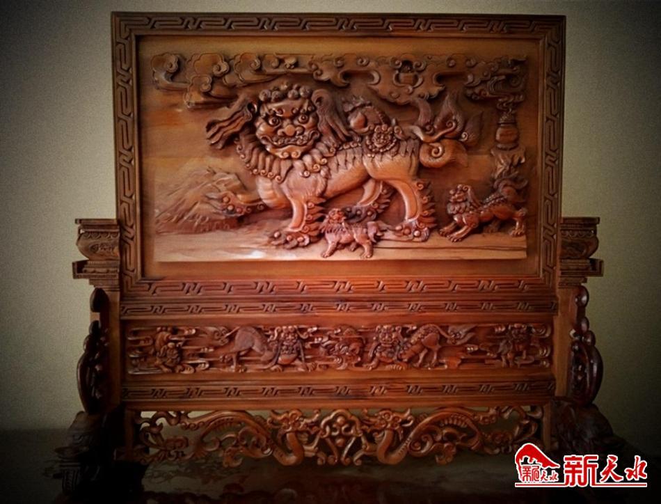 名为《久师图》的这件木雕屏风作品,曾获2020年第十五届甘肃省工艺美术百花奖制作技艺一等奖。创作者关学田告诉记者,本地人称此类屏风为“灯壁子”,一般摆放在农家厅堂八仙桌上,作为一件装饰品,它既能增强厅堂的庄重感,又能为厅堂增添书香气。关学田说,民间还有一种说法就是“灯壁子”可以“驱邪纳祥”。诸如“象、夔龙、花瓶、狮子”等吉祥图案,象与花瓶寓意万象平安,夔龙万字纹代表富贵绵长。狮子有大有小,分别象征“太师、少师”之位,有飞黄腾达的寓意。