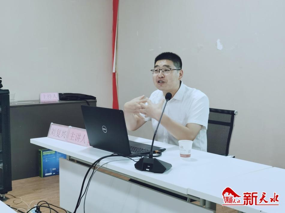 天水市博物馆副研究员刘复兴作了题为《张家川文化与基本陈列的历史再现——基本陈列讲解技巧》的专题讲座,主要从时代对讲解的要求等方面,以张家川的历史为线索,将张家川的历史文化分为五部分,根据不同的内容提出不同的讲解方法。刘复兴在报告中提到,要讲好文物,就要寻找文物背后的故事,讲解要全面性、知识性、趣味性,在报告的过程中提出文物的“五讲四法”,要针对不同的人群撰写出不同的讲解词进行讲解,要视野宽阔。刘复兴的讲解生动,内容充实。报告结束后就基本陈列讲解的相关问题与聆听人员进行了交流。