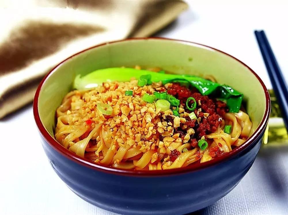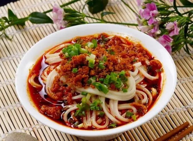 1841年,有一个叫陈包包的小贩,把家里做好的面条拿到街上去卖,由于他一边挑着扁担,一边沿街叫卖,人们就以“担担面”命名这个小吃了。自此,这种可走街串巷的小吃迅速在洛门的街上走俏起来,用现在时髦的话说就是“新晋网红”产品。一百多年来,改天换地,但未曾改变的还是那常见于街边小摊。一两顶帐篷,三两张小桌,三四条长板凳,竹笸箩里码着麻好的面,一盆熟菜丁,一盆生葱,几样调料,两口砂锅,便可招待食客了。顺应时代,很多小摊也有了大店面,所谓“鸟枪换炮”,做出自己的招牌,比如薛家臊子面,相约吃面有了具体的地点名字。经年累月被烟熏火燎得黑乎乎的砂锅,架在炉火上,热气腾腾的汤在砂锅里翻滚着,摊主熟练地抓起面放入汤中,捞面、舀汤、放菜,调上蒜汁、香醋、辣椒、芥末水,一连串动作一气呵成。热乎乎、香喷喷、色香味俱全的一碗热汤面送到食客的手中,刚用筷子翻搅一下,那种殊异的香便扑面而来,禁不住先咽一口涎水。三两下,调料拌匀了,先品一口汤,浑身顿感酣畅淋漓,这是期待已久的味道,馋虫被无限勾起,迫不及待地张开大嘴,几口下去,辣、鲜、香……各种滋味将味蕾刺激得十分过瘾。担担面的香味牵住味蕾、由鼻入脑、由口入心,解一场舌的相思,而又生起延绵不绝的念念不忘。担担面啊,怎么也吃不够。