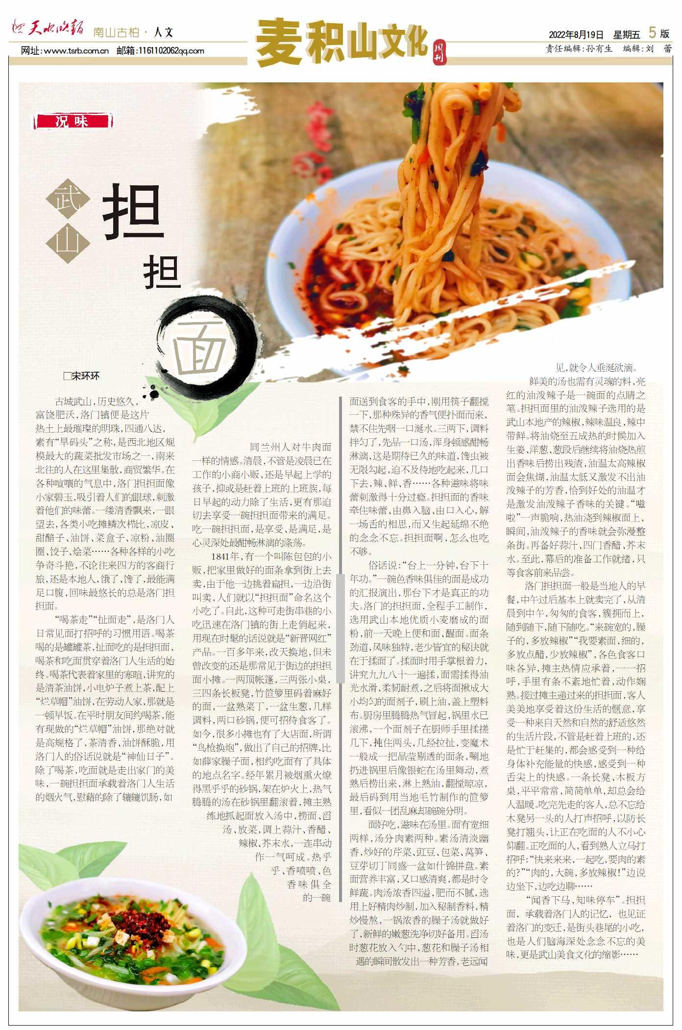 “闻香下马,知味停车”。担担面,承载着洛门人的记忆,也见证着洛门时代的变迁,是街头巷尾的小吃,也是人们脑海深处念念不忘的美味,更是武山美食文化的缩影……