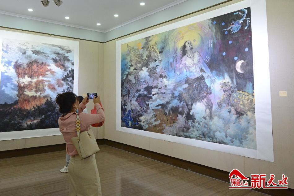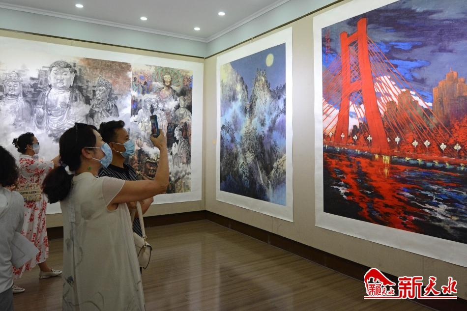 为认真贯彻落实省第十四次党代会和市第八次党代会精神,喜迎党的二十大胜利召开,充分展示天水优秀传统文化的深厚底蕴,深挖文化根源,讲好伏羲画卦故事,增强文化自信,凝聚民族精神,铸牢中华民族共同体意识,天水市文化和旅游局紧扣伏羲始祖文化主题,精心挑选出我市实力派画家、中国美术家协会会员姚四有潜心创作的《一画开天》《女娲补天》《麦积烟雨》《净土瑞雪》《玉泉仙境》等弘扬伏羲功德的大尺幅美术作品约140余幅展出,用笔墨为天水的人文景观和山川风貌立传,多角度展示了古城天水厚重的历史文化和丰富的旅游资源。