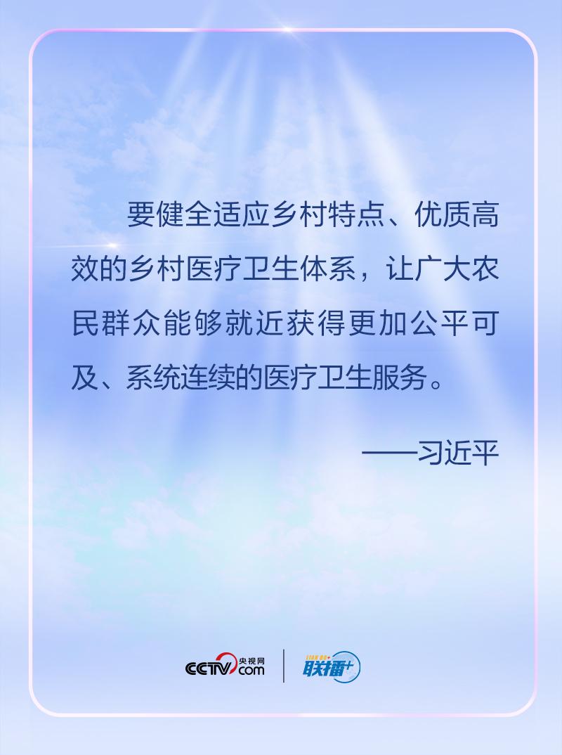 ●要提高农村地区医疗保障水平,强化乡村医疗卫生服务体系功能,加强疾病预防控制能力建设,加快构建起强大的公共卫生体系,为维护人民健康提供有力保障。