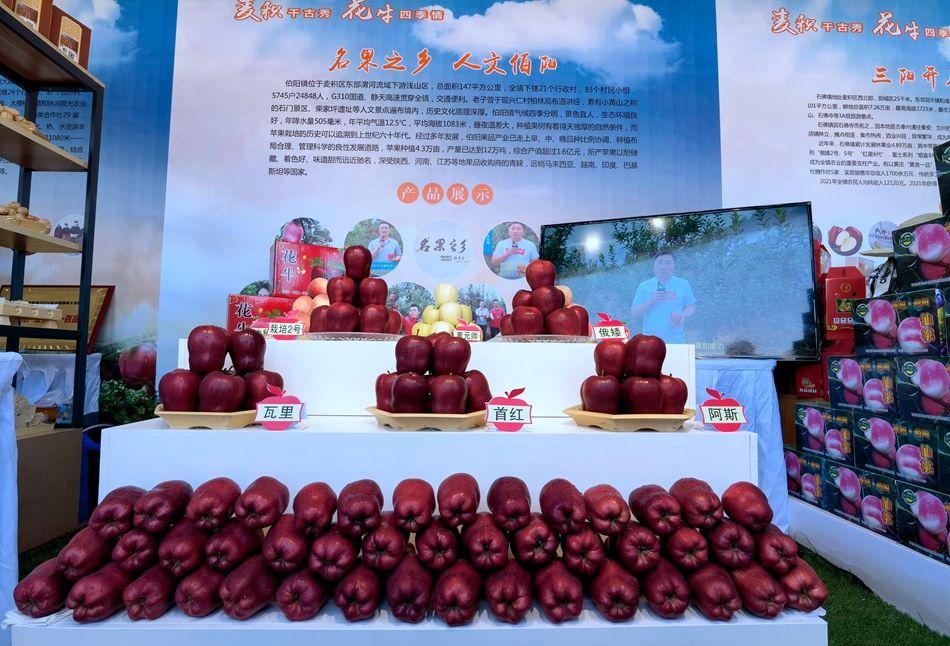 伯阳镇乡村振兴工作站副站长夏晶告诉记者:“伯阳镇是花牛苹果的主产区,苹果种植已达到4.3万亩,产量已达到12万吨,预计今年综合产值将达到2.3亿元。今天带来的是伯阳镇马现村的花牛苹果、仙桃,主要有栽培2号、俄矮还有黄元帅和中秋蜜等7个品种。咱们伯阳镇的花牛苹果果形端庄、颜色鲜艳、口感脆、味道甜,目前已入驻京东商城,欢迎大家前来采摘品尝。”