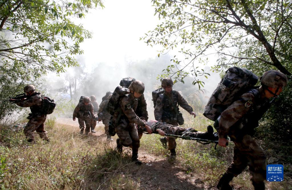 无锡联勤保障中心第910医院将野战医疗队拉到闽南某山区,在陌生地域开展实战化卫勤训练(2022年1月4日摄)。新华社发(巴涛 摄)