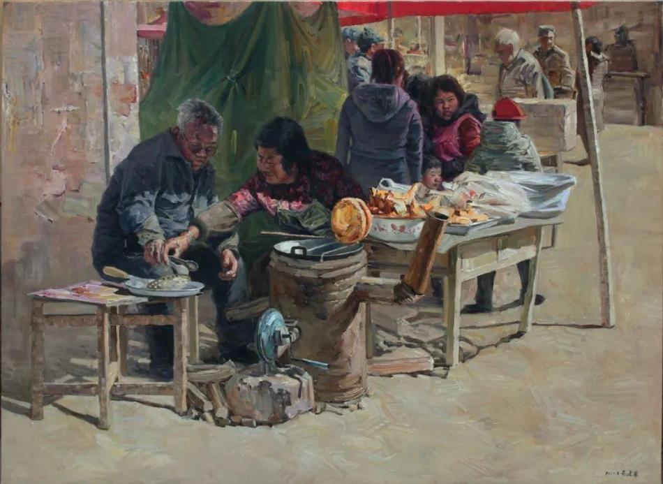 《老尹的油饼摊》 120cmx165cm 油画