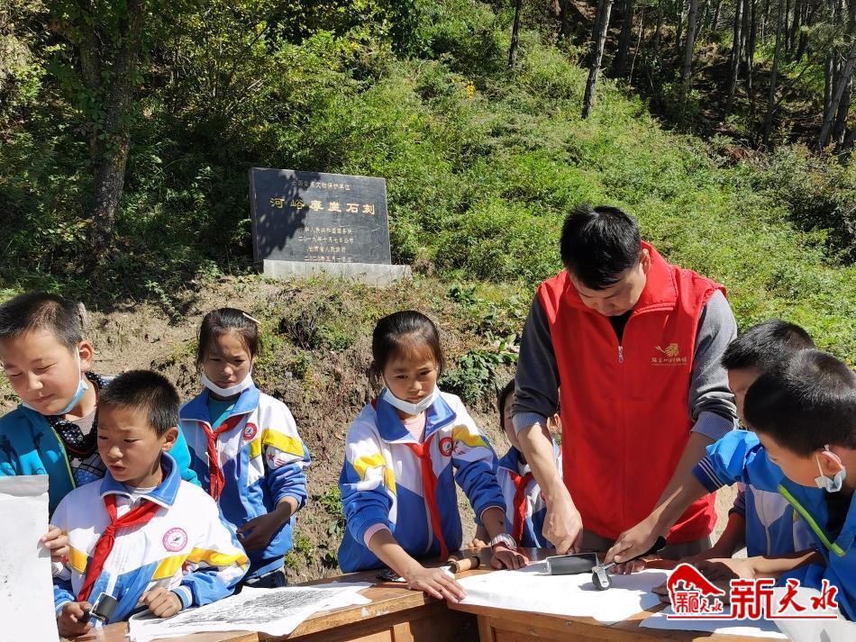 张家川县博物馆在河峪摩崖石刻开展研学活动