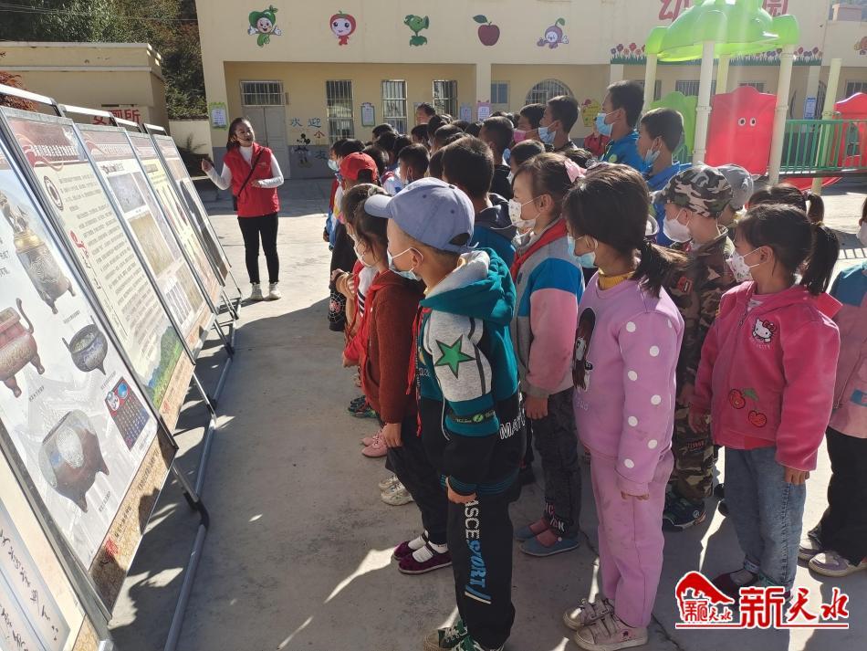 讲解员组织全校师生参观“流动博物馆”,通过图文展览和现场讲解的方式,普及张家川县历史文化知识,让同学们体会地域文化的博大精深和深厚底蕴。