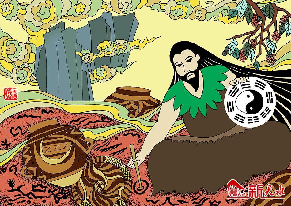 图绘伏羲功绩之一|始画八卦 肇启文明