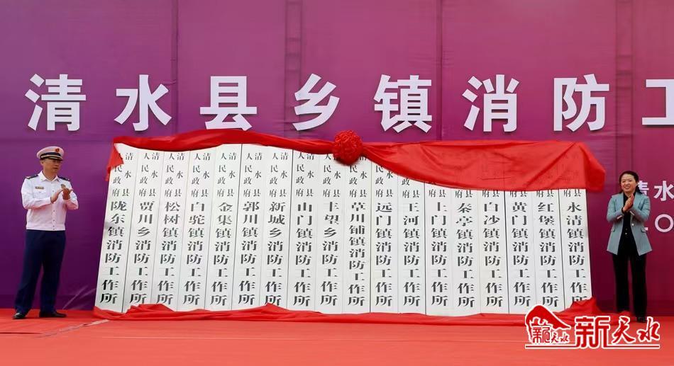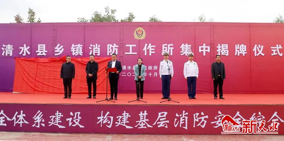 新天水讯 据清水县融媒体中心消息 10月9日,清水县举行乡镇消防工作所集中揭牌仪式。县委副书记、县长李菊霞,市消防救援支队支队长牛小强出席仪式并为清水县乡镇消防工作所集中揭牌。