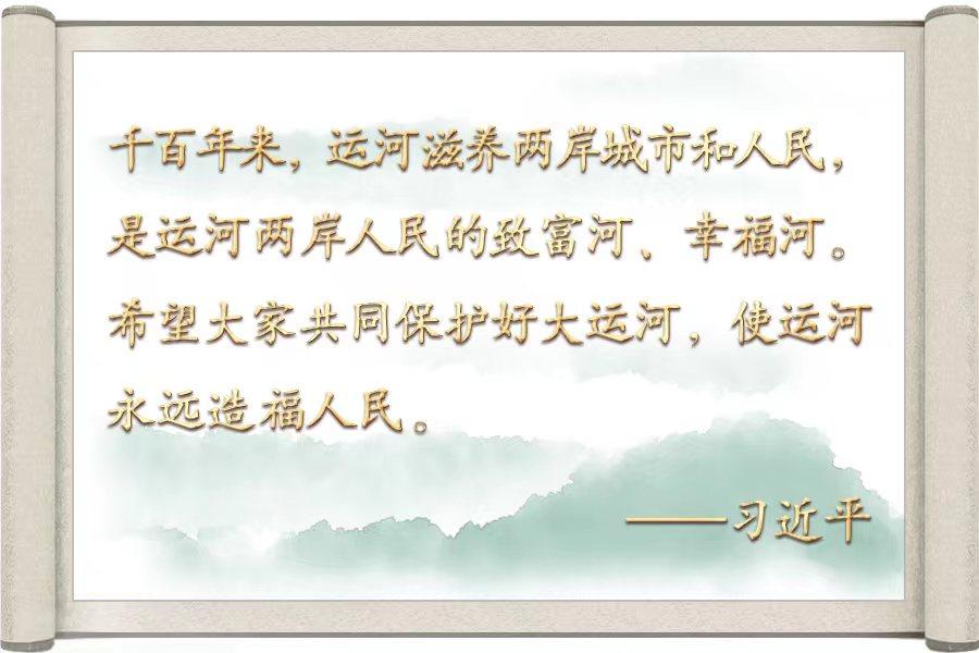 习近平总书记指出,千百年来,运河滋养两岸城市和人民,是运河两岸人民的致富河、幸福河。希望大家共同保护好大运河,使运河永远造福人民。