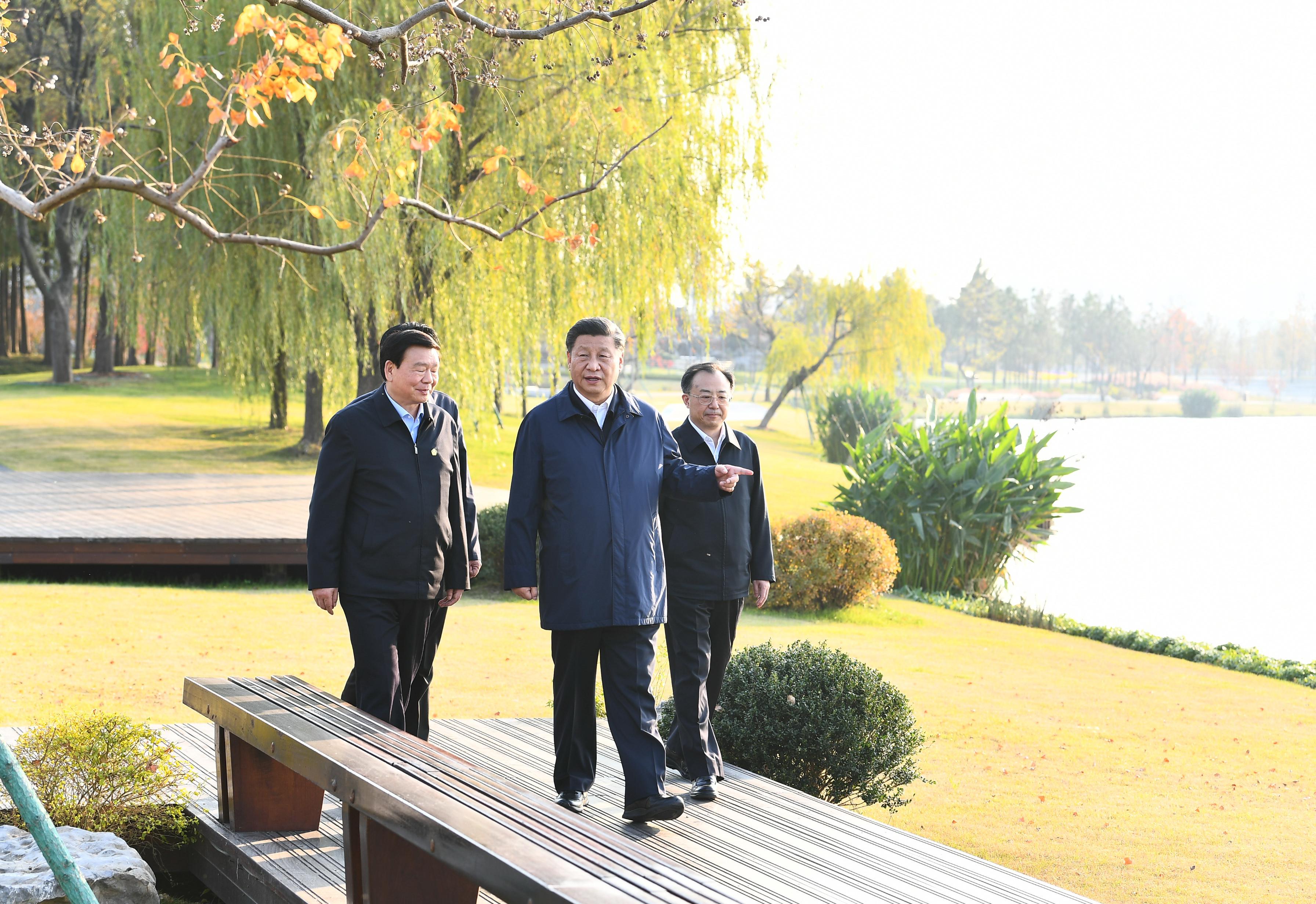 2020年11月,习近平总书记来到扬州考察调研。在运河三湾生态文化公园,习近平总书记听取大运河沿线环境整治、生态修复及现代航运示范区建设等情况介绍。