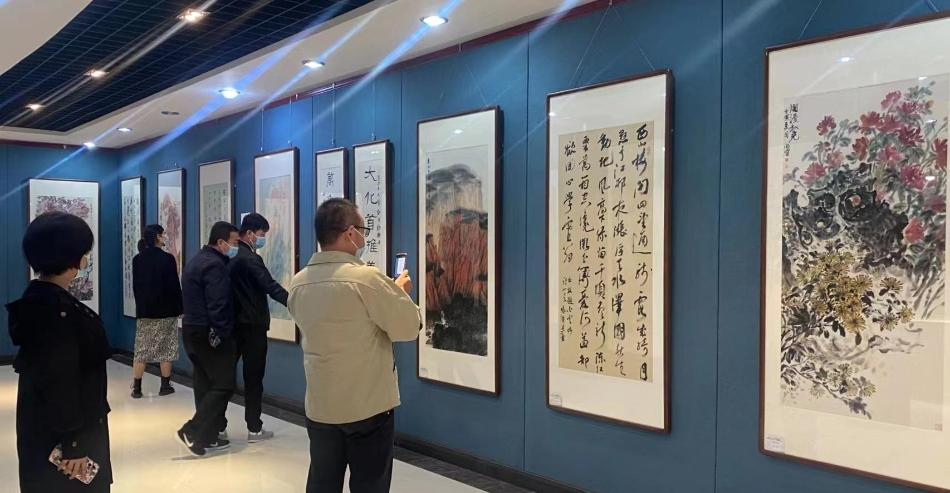 游客欣赏书画作品