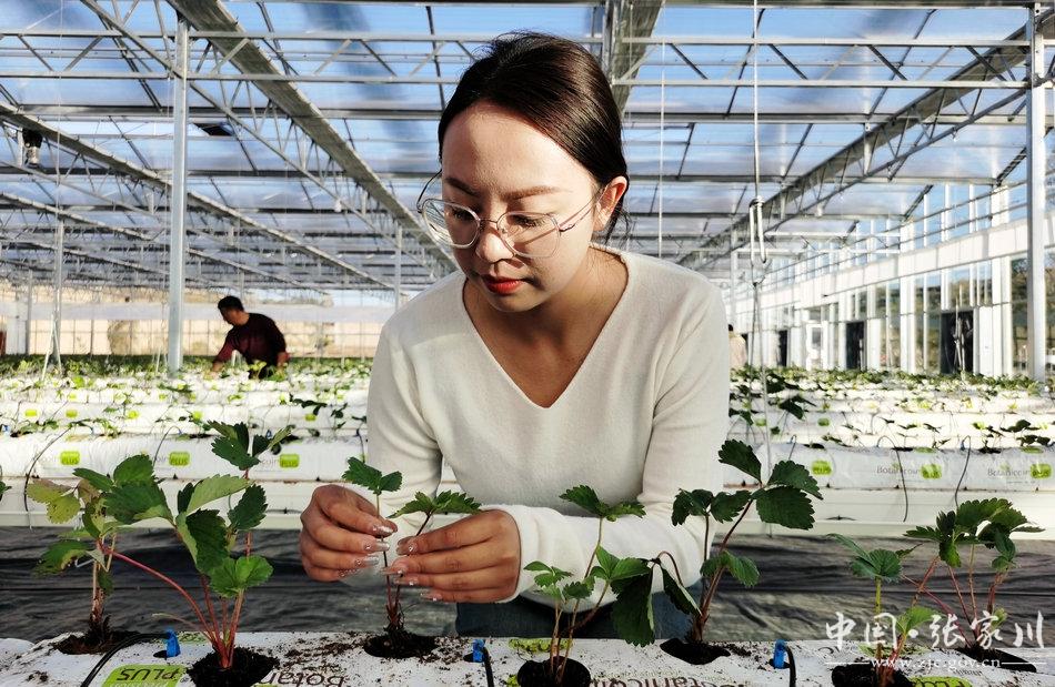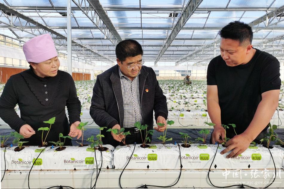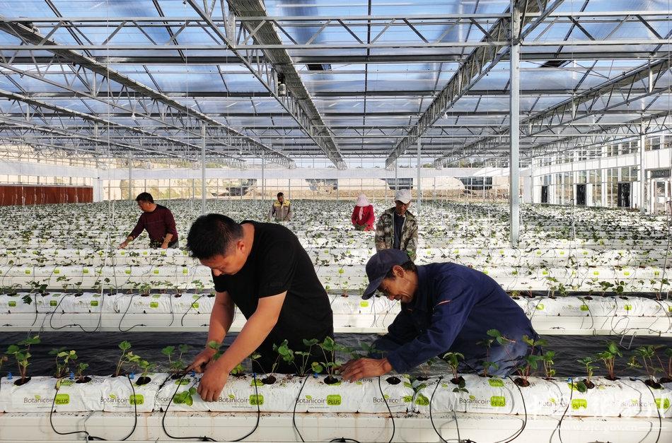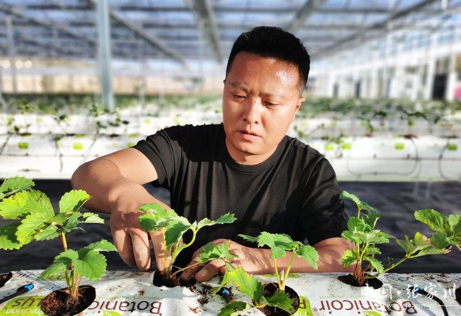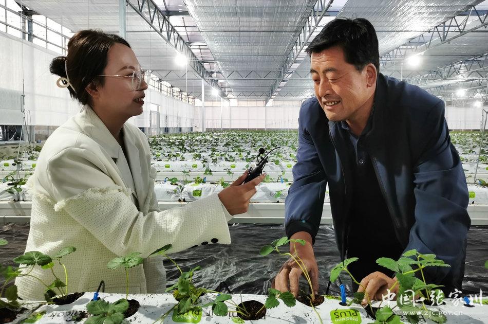进行技术指导的张家川县经作站站长、高级农艺师马智峰说,党的二十大报告中明确指出,全面推进乡村振兴,坚持农业农村优先发展,更加凸显了农业农村发展的重要性和紧迫性,作为基层农技推广工作者,深受鼓舞。县农业农村部门结合构建“4+2”现代产业体系,积极培育蔬菜产业,在木河乡庄河村建成现代农业产业园一处,建成2160平方米玻璃温室一座,现已定植章姬、红颜、约心、香野4个草莓品种,预计元月份即可上市。今后,我们要以时不我待的精神、饱满的工作热情和奋发有为的工作姿态,加强技术服务与指导,注重示范引领,为现代农业高质量发展贡献农技人的一份力量。