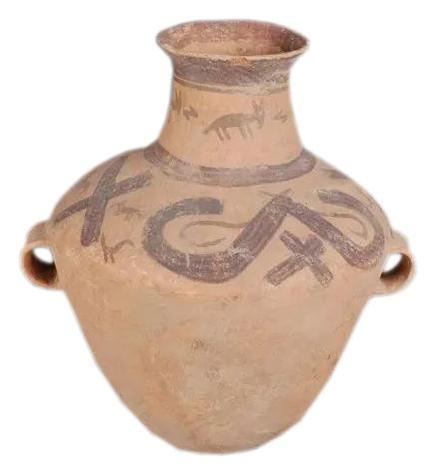 辛店文化双钩动物纹双耳彩陶罐