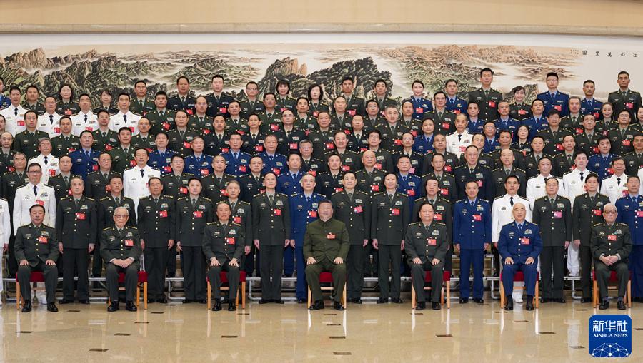 会议召开前,习近平亲切接见出席党的二十大解放军和武警部队全体代表、特邀代表、列席人员,同大家合影留念。
