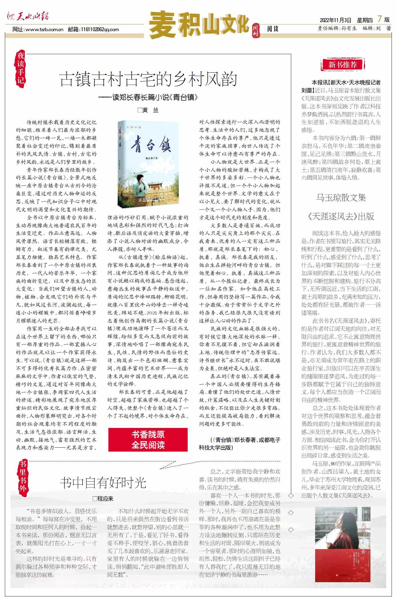 【书香陇原 全民阅读】古镇古村古宅的乡村风韵|读郑长春长篇小说《青台镇》