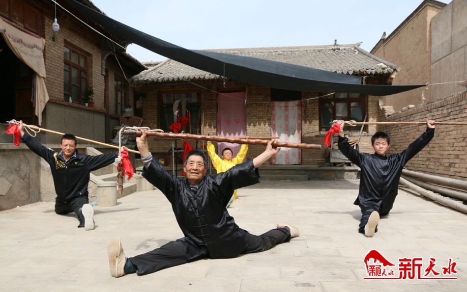 跟大部分农村习武之人一样,康吼吼直率地说起他的习武之路:“我今年74岁,练回桩已过了半个世纪,是武山康氏回桩第四代传人。回桩至今共有六代传人,从我太爷康彪学成,传至爷爷康占海、父亲康永吉,又传给我,我再传给儿子占兵,儿子接着传给孙子鹏飞、云飞。”