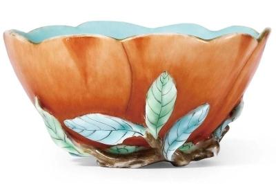 乾隆时期制瓷业达到了清代顶峰,各类精巧的文玩摆件,成为乾隆时期的风尚。此件芙蓉花形杯就是此类作品的佳器,极具乾隆粉彩瓷的风格特点,若置于橱格或案头,时时把玩,大有将晚秋风光握于掌中的畅快之感,盈盈一握之间,尽显深秋之雅趣。