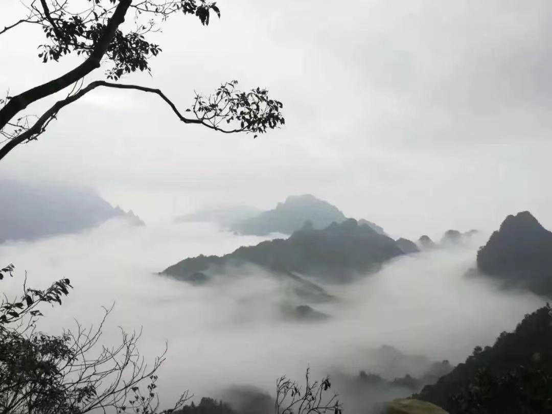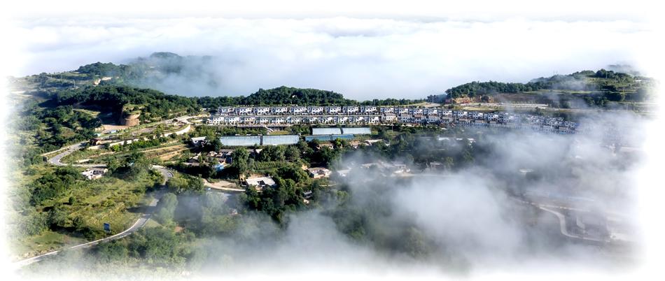 雾锁山湾 “雾锁山头山锁雾,天连水尾水连天”,这是古诗中的景象,却也道出了李官湾大雾连天的神秘之处。大雨过后,李官湾大雾弥漫,重峦叠嶂,翠霭晴岚,看不清远处的山头和村庄,新村和古建檐牙高啄,相互辉映,只有李官湾牌坊若隐若现,在烟雾迷蒙中,新铺的李官湾大道蜿蜒曲折,一直延伸到花舞南山。在雾霭沉沉中,山头和天空连接在一起,分不清是山还是天、是雾还是雪。这一切,让人们真切感受到了连绵无尽的美丽生态农庄的壮观。